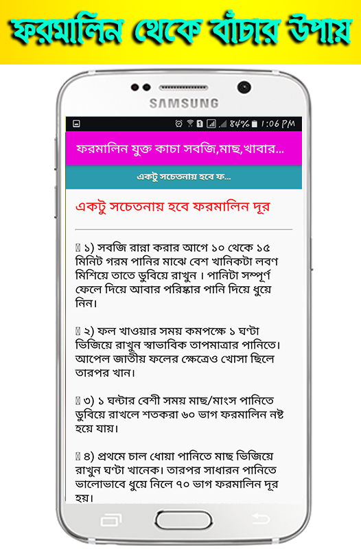 ফরমালিন যুক্ত কাচা সবজি,মাছ,খাবার চেনা ও সমাধান অ্যাপে আপনাকে অভিনন্দন ।