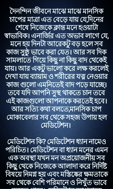 By this app you can meditate to find inner peace and calm yourself from the nosy world.