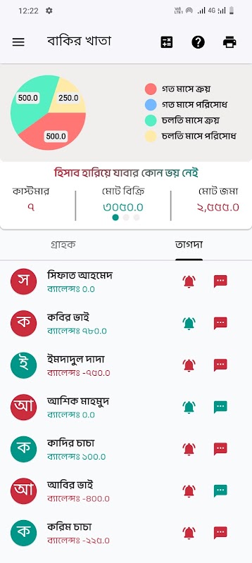 সহজ গ্রাহক পরিচালনা: প্রতিটি গ্রাহকের জন্য আল াদাবাকিখাতা、যেখানেতাদেরমোটবাকিওপরিশোধের সময়কালদেখাযাবে।