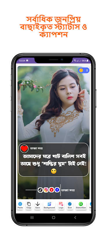 সহজব্যবহার:সহজএবংব্যবহার-বান্ধবইন্টারফেস যা আপনাকে দ্রুত স্ট্যাটাস ও ক্যাপশন খুঁজে পেতে সাহায্যকরবে।