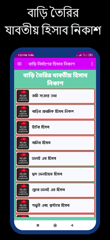 我们制作了这个包含所有房屋建筑计算 (bari korar hisab) 的新应用程序。我们不知道盖新房子的许多计算。我们制作此应用程序是为了您的利益。