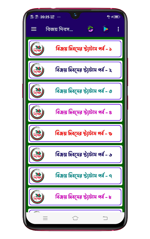 বিজয়দিবসেরজানিয়েকরছিআজকেরএইদেশাত্ত্বকবোধক。。 বছরঘুরেআবারোএলোগৌরবোজ্জ্বলদিনদিনদিনদিবসদিবস’。 ১৬ডিসেম্বরইতিহাসেসবচেয়েগুরুত্বপূর্ণ。。 ১৯৭১সালেরবাংলাদেশএকটিরাষ্ট্রবিজয়ছিনিয়েএনেছিল。 প্রতিটিবিশেষএইমিডিয়ারআমরাঅন্যেরসাথেবিনিময়করেথাকি。 তাই বাদ যায়না বিজয় দিবসও। এইআনন্দেরআমরাসোশ্যালসমানভাবেউদযাপনকরি。 এজন্যআমাদেরহয়দিবসেরএসএমএসএসএমএস,স্ট্যাটাস,কবিতা,কবিতা,ওইতিহাস。 আজকের এই অ্যাপটিতে থাকছে সেসবই।