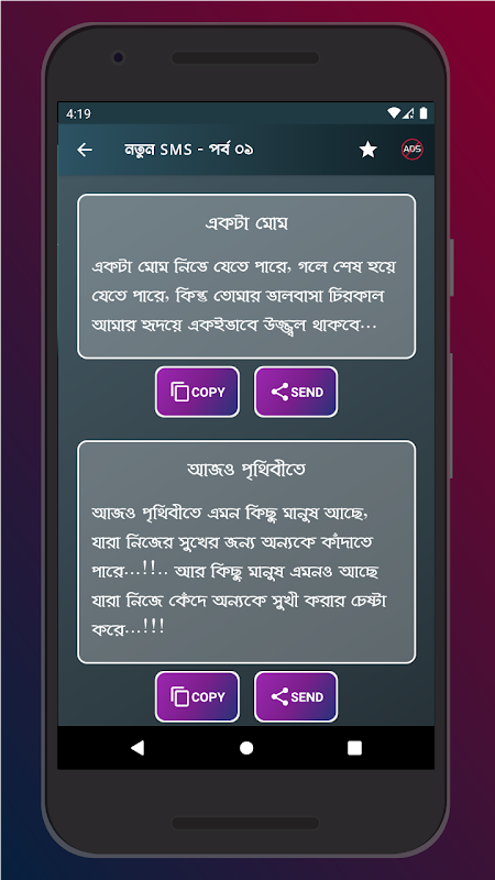 হ্যালো,আপনাদেরজন্যআবারোনিয়েআসলামনতুনএকটি(নিউ)মেসেজকালেকশনঅ্যাপ。 এইঅ্যাপটিতেরয়েছে২0২1সালনতুনএবং২0২0সালেরপুরাতনসবমিলিয়ে50হাজার+ SMSএবংফেসবুকস্ট্যাটাস(孟加拉语状态)ওফেসবুকট্রলকালেকসনএছাড়াওরয়েছেনতুনকিছুভালবাসারউক্তিওরোমান্টিকপ্রেমেরছন্দ。