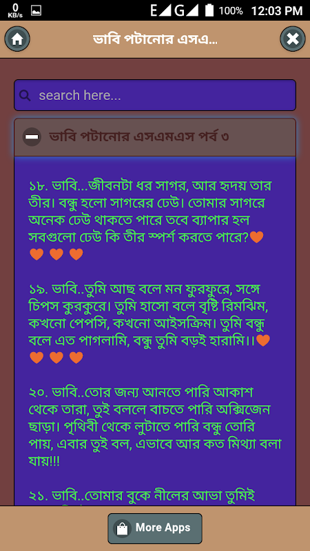 ভাবি পটানোর এসএমএস.....এই অ্যাপস দিয়ে আপনারা সহজেই এসএমএস এর মাধ্যেমে ভাবিকে পটাতে পারবেন। তাই দেরি না করে আমার এই অ্যাপসটি ডাউনলোড করুন।