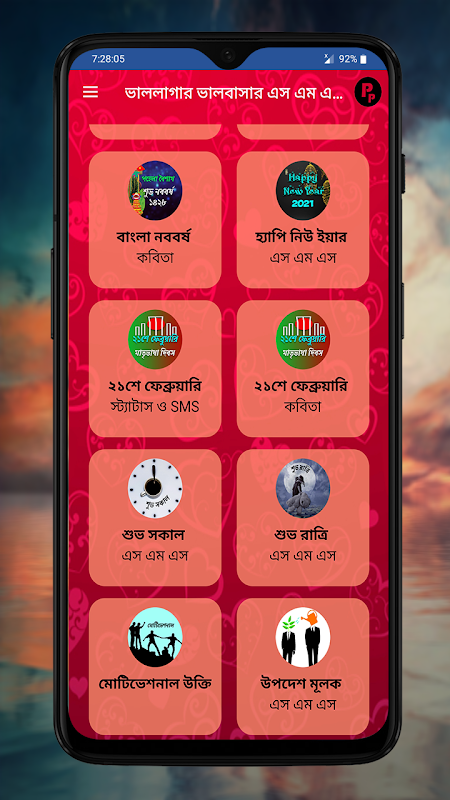 মনের মানুষটিকে খুশি করতে সকল প্রকার এসএমএস ও স্ট্যাটাস এক করে বানানো হয়েছে অ্যাপটি।