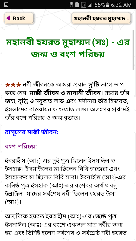 হযরত মুহাম্মদ (সাঃ) এর জীবনী এর নিয়ে আমাদের এই অ্যাপটি। হযরত মুহাম্মাদ সঃ এর জীবনী পূর্ণাঙ্গ জীবন নিয়েই আমাদের অ্যাপ এর মূল আলোচনা।হযরত মুহাম্মাদ (স) এর পূর্ণাঙ্গ ও বিস্তারিত জীবনী এটি একটি ইসলামিক অ্যাপ।হযরত মুহাম্মাদ (সাঃ) এর জীবনী প্রত্যেক মুসলমান এর জন্য খুবই গুরুত্বপূর্ণ।হযরত মুহাম্মদ সঃ এর জীবনী সম্পকে যদি আমাদের পূর্ণাঙ্গ জীবন ধারনা না থাকে তাহলে আমরা মুসলিম হিসেবে জীবন পরিচলনা করা আমাদের অসম্ভব হয়ে যাবে।হযরত মুহাম্মদ (sallallahu alaihi wasallam) তিনি ছিলেন একজন মহান পবিত্র চরিত্রের অধিকারি।হযরত মুহাম্মদ (সাঃ) এর বানী আমাদের জীবন কে সুন্দর করে তুলে।নবী মুহাম্মাদ (সঃ) এর জীবনী পরার পরে অনেক ইতিহাসবিদ ও বিশেষজ্ঞদের মতে বিশ্ব নবী হযরত মুহাম্মদ (সাঃ) পৃথিবীর ইতিহাসে অন্যতম প্রভাবশালী রাজনৈকি ও সামাজিক নেতা।বিশ্ব নবীর জীবনী (হযরত মুহাম্মাদ(স) এর জীবনী আমাদের অফুরন্ত শিক্ষার উৎস।বিশ্ব নবীর মহান জীবনী সম্পকে জানা ও শিক্ষা নেয়া আমাদের জীবনের জন্য খুবই গুরুত্বপূর্ণ।আমাদের অ্যাপটিটে বিশ্ব নবীর জীবনী এর ঘটনাগুলো তুলে ধরা হয়েছে।মহানবীর জীবনী- nobijir jiboni ও মহা নবীর বাণী থেকে আমরা জানতে পারবো আমাদের প্রিয় নবী আমাদের অনেক দিক নিরদেশর্না দিয়ে গেছে আমাদের জীবন আমাদের কিভাবে পরিচালনা করতে হবে।মহা নবীর বাণী হল আল হাদিস।আমাদের মহানবীর জীবনী- Nobijir jiboni জানতে আমাদের নবীর সন্নাত কে জানতে হবে।আমাদের নবীর উপদেশ ও সুন্নত অণসরন করে আমাদের জীবন কে পরিচলনা করতে হবে তাহলেই আমরা আলোকিত জীবনের সন্ধান পাবো।নবী রাসূল ও আমাদের নবীর জীবনের ঘটনা থেকে আমরা অনেক শিক্ষণীয় বিষয় সম্পকে জানতে পারবো।