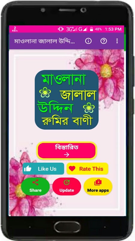 আমাদের এই অ্যাপটিতে পাবেন ২০০+ রুমির বাংলা বানী । ধর্ম , প্রেম জীবন নিয়ে রয়েছে অসাধারণ বানী ।