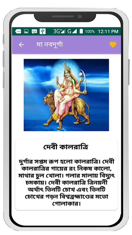 অ্যাপটিতে সনাতন ধর্মীয় মা নবদূর্গার নয়টি রুপ সম্পর্কে বলা হয়েছে ।