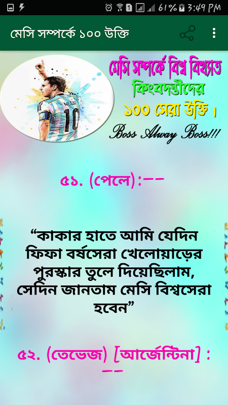关于মেসি সম্পর্কে বিশ্ব বিখ্যাত কিংবদন্তীদের ১০০ উক্তি