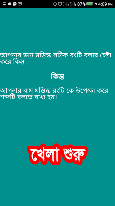 তাই রং বেরং বুদ্ধির খেলা বাংলা গেম টি আপনাকে বিভ্রান্ত করবে এবং অনেক সময় বিরক্ত করবে। রং বেরং বুদ্ধির খেলা বাংলা গেম টি খেললে আপনি বুজতে পারবেন যে আপনি কত দ্রুততার সাথে আপনার মস্তিস্কের কামান্ড বুজতে পারেন।