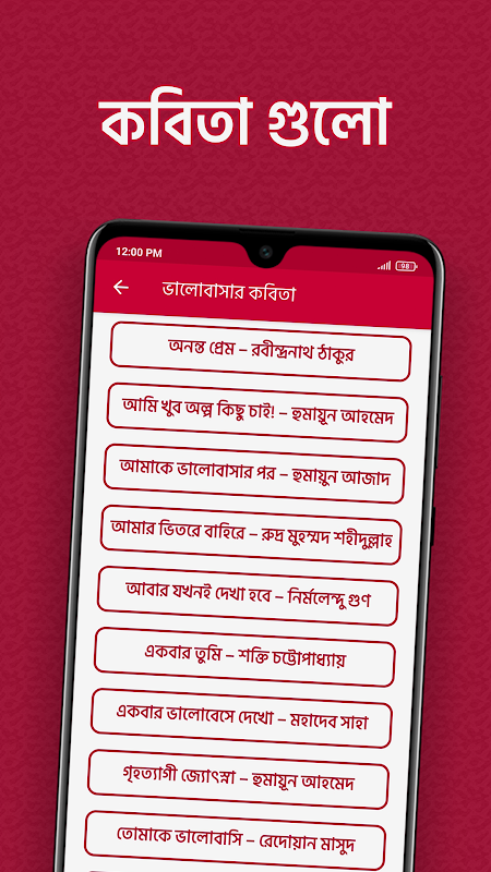 যে সকল কবিতা রয়েছে অ্যাপটিতে :