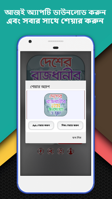 朋友,今天我为您带来了一个有关常识的应用程序。我希望该应用程序会派上用场,以增加您的智能。在这个程序中,讨论了每个国家的首都名称,货币,国家规模,每个国家的人口和语言。这个程序肯定会给你常识。因为它是孟加拉语教育应用程序。该应用程序适合所有考试,包括BCS,工作,大学入学考试。因此,今天就下载,无需等待。