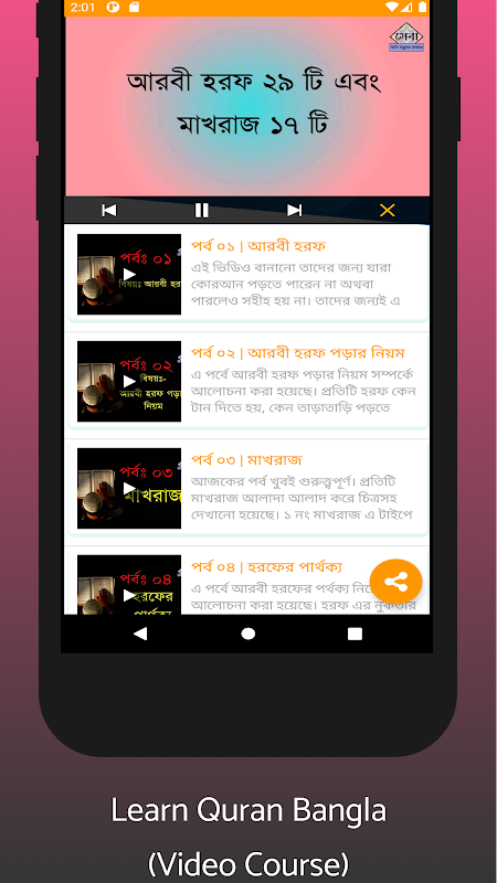 তাজবীদভিত্তিককোরআনশিক্ষা1থেকে65টিপর্বেরএকটিধারাবাহিককোর্স。 আপনারাযারাকুরআনসহীহভাবেপড়তেপারেননা,তাজবীদসহকারেপড়তেপারেননা,তাজবীদসম্পর্কেজানেননা。 তাদেরজন্যইমূলতএকোর্সটি। আপনারযদিএকোর্সটিসম্পন্নকরেনতাহলেআল্লাহরঅশেষরহমতেআপনারাকুরআনসহীহকরেসহীহশুদ্ধভাবেপড়তেওশিখতেপারবেন。 ইনশাআল্লাহ।” - Khalid Saifullah, ইলম সেবা