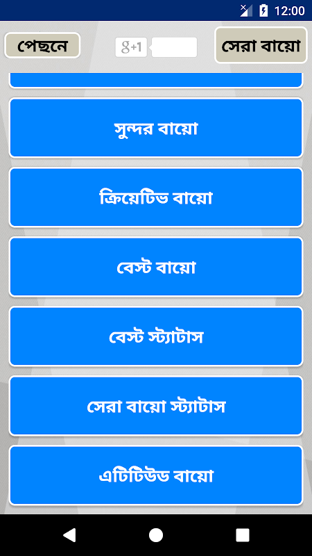 এই এপ এ পাবেন আপনি অসংখ্য বায়ো স্ট্যাটাস এর কালেকশন সমূহ। যেটা দিয়ে আপনি আপনার নিজের সোস্যাল সাইতের প্রোফাইল টাকে আরো সুন্দর ভাবে সাজিয়ে তুলতে পারবেন ।