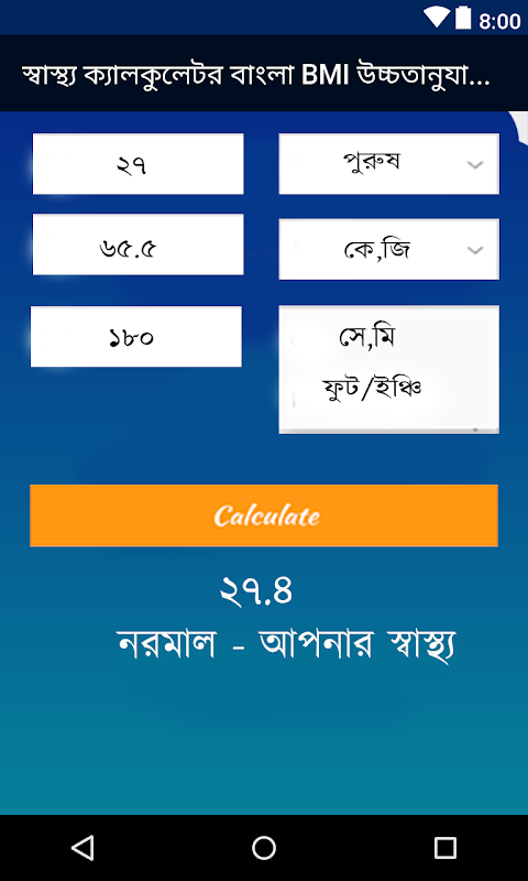 এই অ্যাপটির মাদ্ধমে আপনার উচ্চতা অনুযায়ী আদর্শ ওজন কত থেকে কত হওয়া উচিত তা জানতে পারবেন।