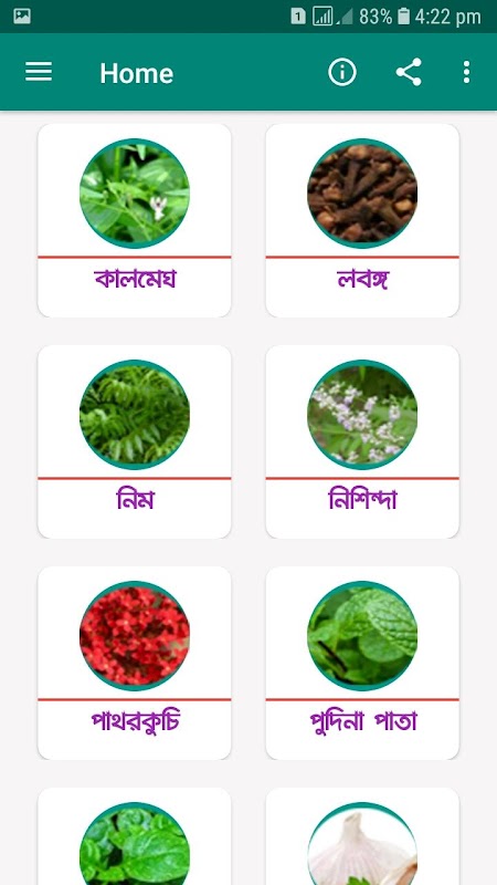 কেশরাজ গুণাগুণ,ধুতুরা গুণাগুণ,বহেরা গুণাগুণ,দাদমর্দন, গুণাগুণ,পুদিনা গুণাগুণ,তুলসী গুণাগুণ,বাসক গুণাগুণ,যষ্টিমধু গুণাগুণ।