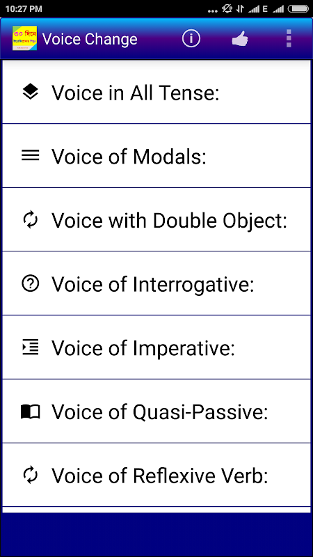 এই অ্যাপে ইংরেজি গ্রামার এর যে সব অধ্যায় নিয়ে বিস্তারিত আলোচনা করা হয়েছে তা নিম্নরূপ-