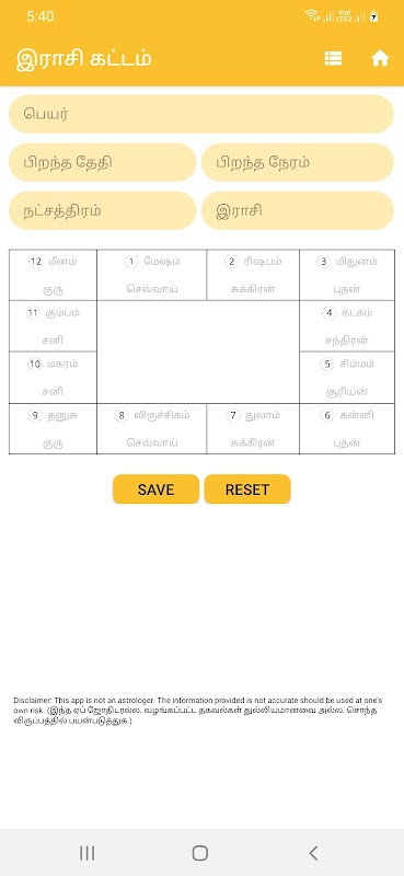 Rasi Kattam应用程序将记录十二(12)座房屋的占星图。