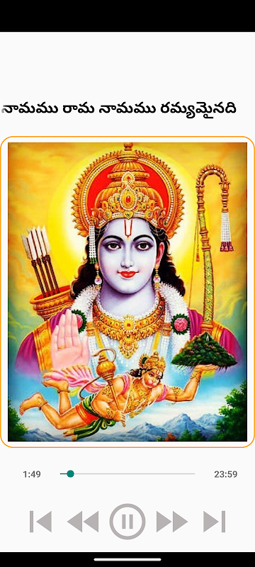 “Rama namamu rama namamu ramyamainadi”应用程序包含对罗摩勋爵的赞美。