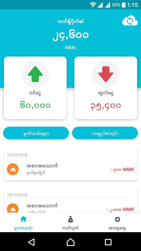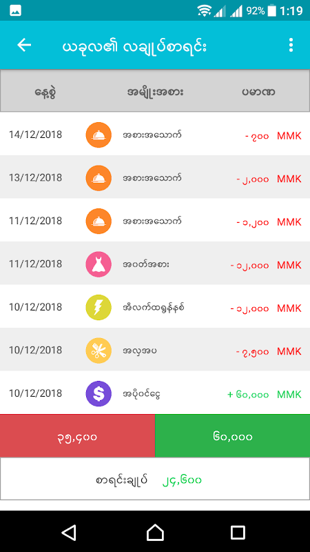 သင္သင္0င္ေငြထြက္စာရင္းမ်အားမွတ္သားၿပီးျလည္ၾကည့္ရႈႏသည္သည္သည္, ကုန္က်ရိတ္ရိတ္ားကိုလည္းမွတ္သုံးစြဲကာမိမိ၏အသုံးစမ်မ်ေခြၽတာႏိုင္ပါသည္သည္。 သင့္အားနစ္က်က်သုံးစြဲရန္ကူညီေပါသည္သည္。