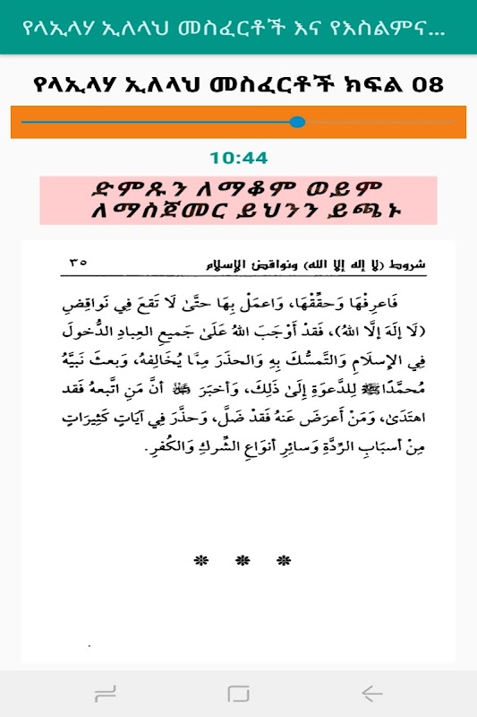 የሹሩጡ ላኢላሃ ኢለላህ እና የነዋቂደል ኢስላም ኪታብ ሙሉ ደርስ በኡስታዝ ሳዳት ከማል ያለኔት ለመቅራት በሚመች መልኩ ኪታቡ እየታዬ ጥርት ባለ ድምጽ