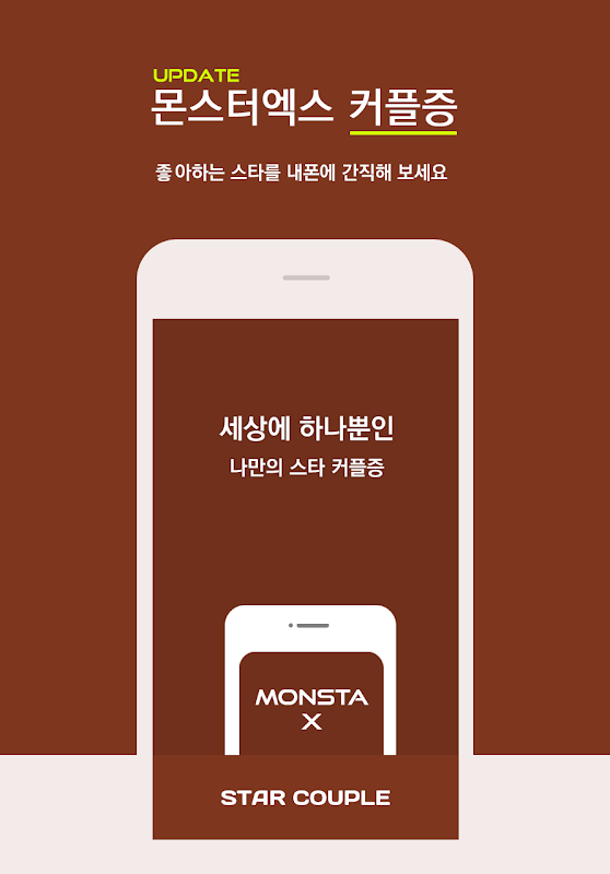 매니아 팬덤 이라면 누구나 꿈꾸는 나만의 스타와 커플증을 만드는 앱으로 좋아하는 몬스타 엑스 멤버를 선택하여 가상의 커플증을 만들어 보세요.