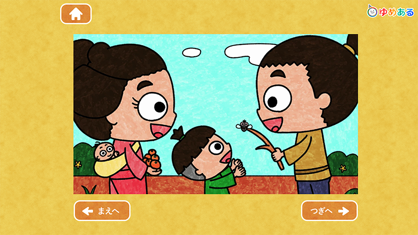 幼児向けの文章短めの日本昔話の動く絵本アプリです。