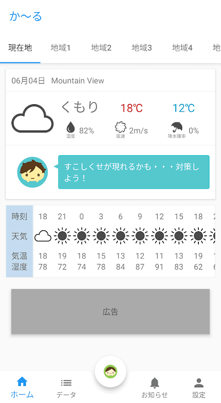 关于くせ毛さんのお出かけ前に見る天気アプリ「か~る」