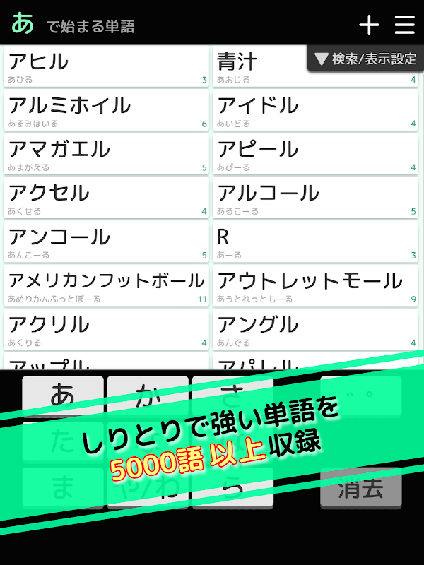 ・ Shiritori中经常出现的字符中包含更多单词。我们已经实现了专门针对shiritori的字典。