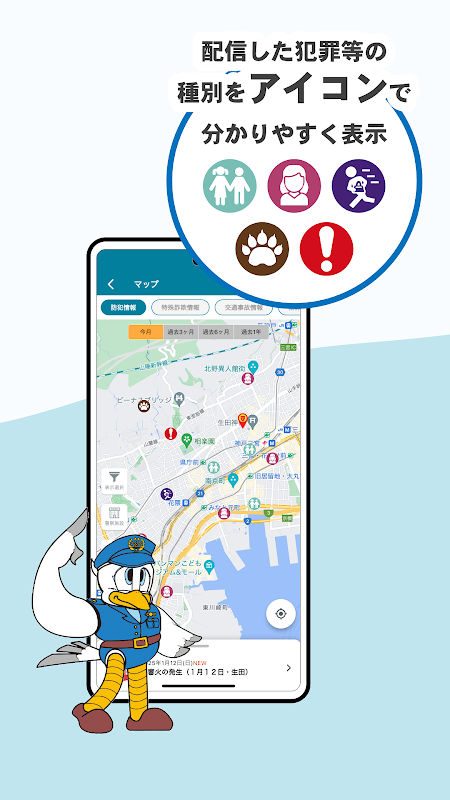 兵库犯罪预防网络+(Plus)提供县内犯罪发生信息、可疑人员信息、特殊诈骗相关信息、交通事故信息等,并提供预防犯罪蜂鸣器功能等对安全、安保有用的便利功能。