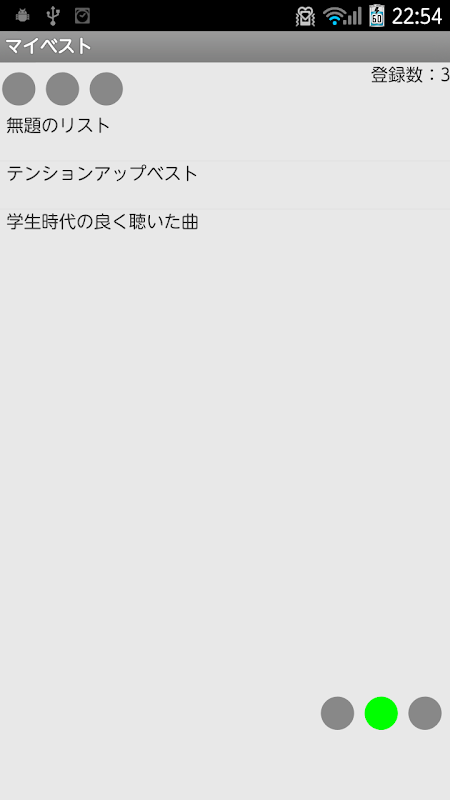 アプリ上部の3つの丸と下部の3つの丸で画面が切り替わります。