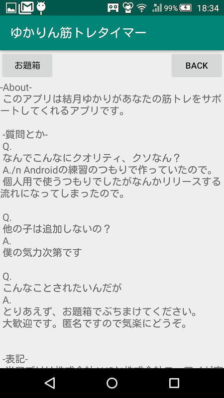 这是一个简单的肌肉训练计时器。 Yukari宣布。