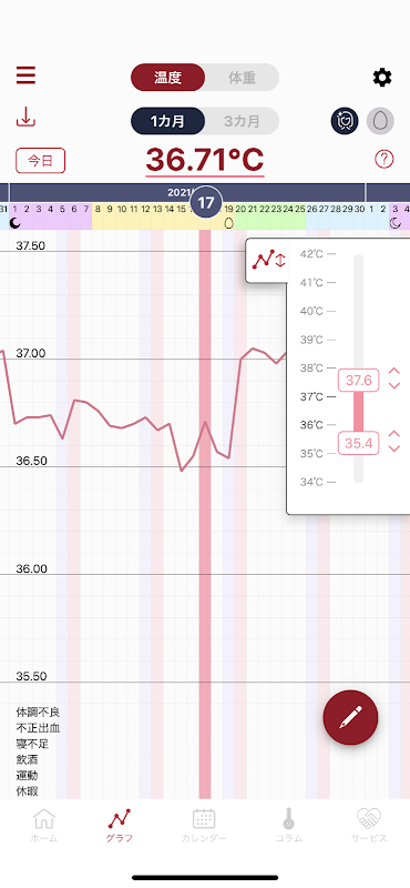 ・圖表(溫度圖表、顏色編碼身體狀況預測、重大事件顯示、體重圖表)