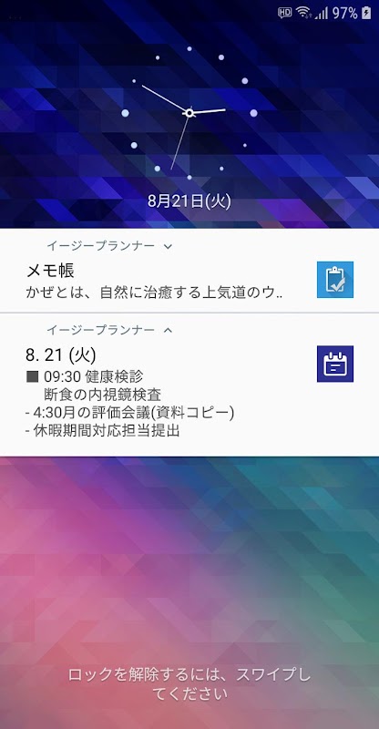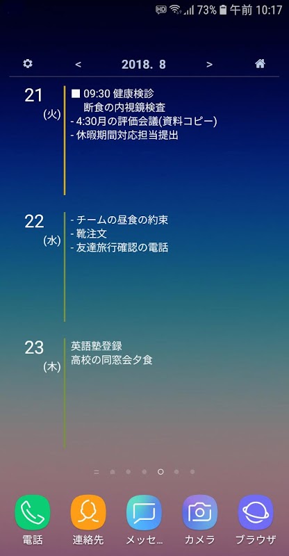 - 状態バーの今日日程 : 状態バーを下げれば、今日のスケジュール自動表示機能