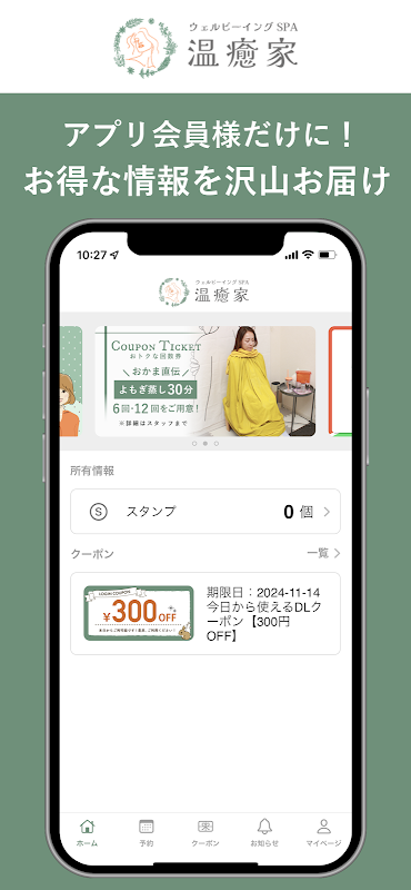 您可以通过应用程序获取【Wellbeing SPA治愈之家】的最新信息和超值优惠。您还可以随时通过智能手机查看菜单、所需时段并进行预订。通过安装该应用程序,您可以更方便、更贴近地使用【Wellbeing SPA疗愈之家】。