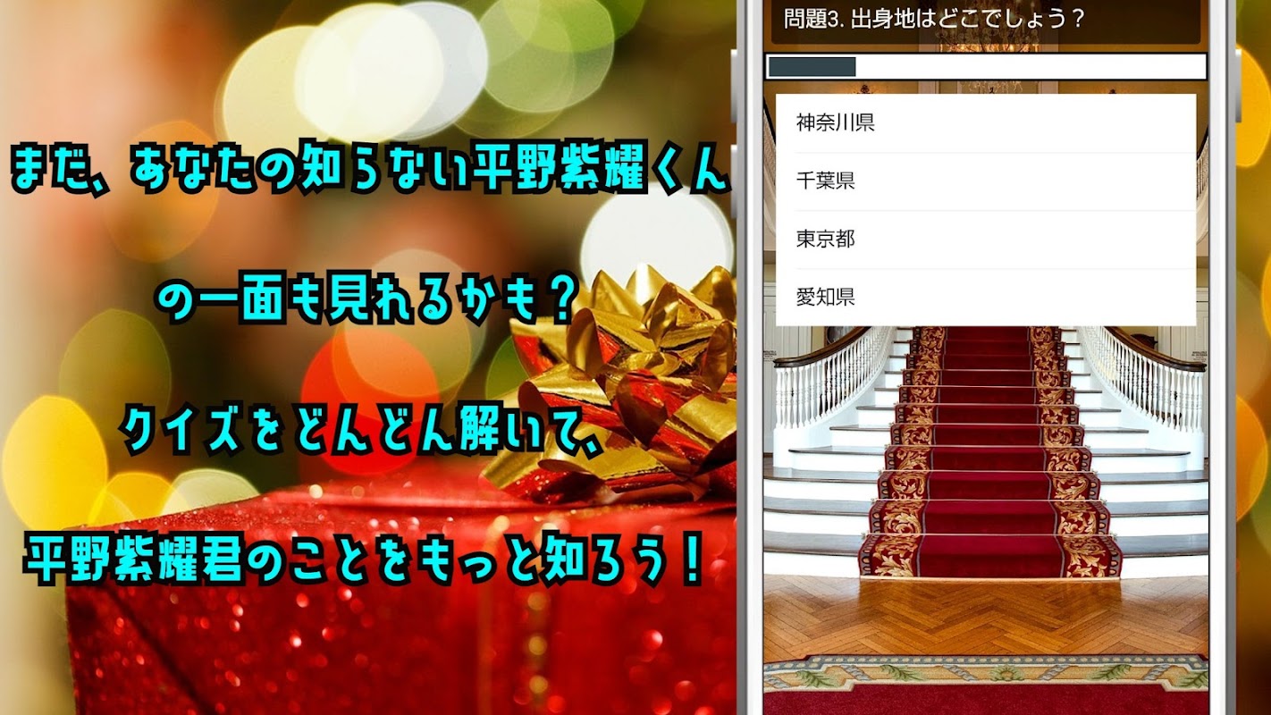 Johnny's King & Prince 成员平野翔的测验应用程序。平野翔迷的必看景点!有很多问题。让我们的目标是所有正确的答案。