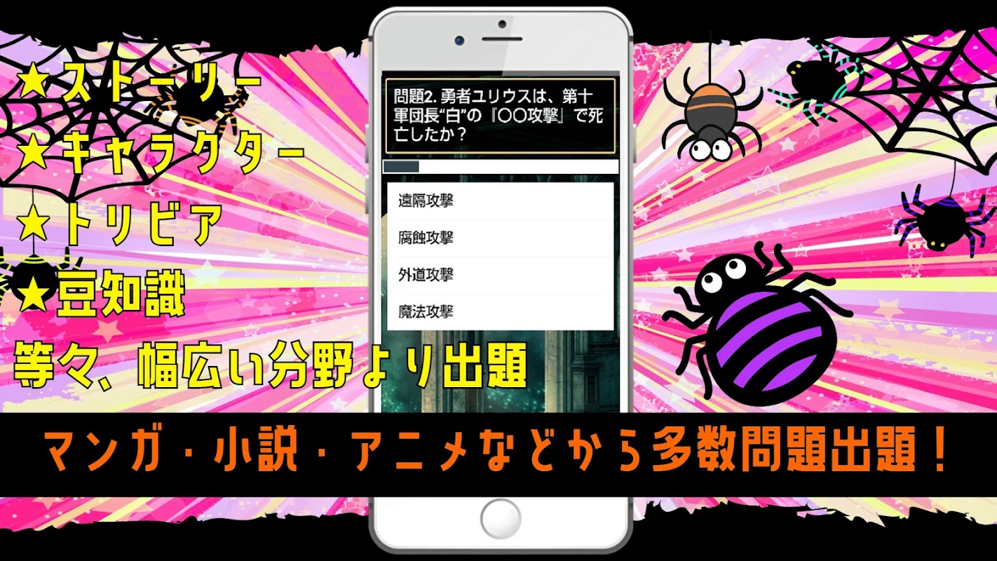虽然它是一个受欢迎的动漫蜘蛛,但已经出现了某种测验应用程序。我们有各种各样的问题,从漫画、小说、动漫等。