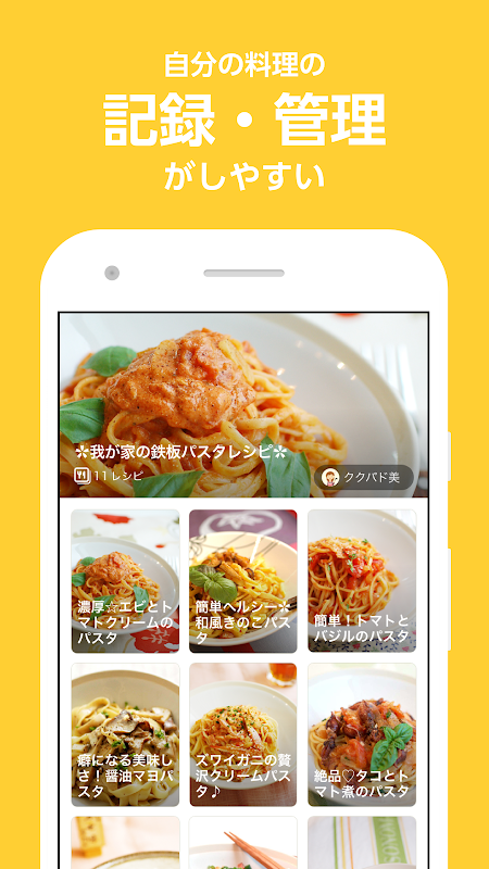 自分の料理やレシピを記録したい方向けのアプリ「クックパッドMYキッチン」料理のレパートリーを増やしたい、新しいアイデアに出会いたい方にもおすすめです。