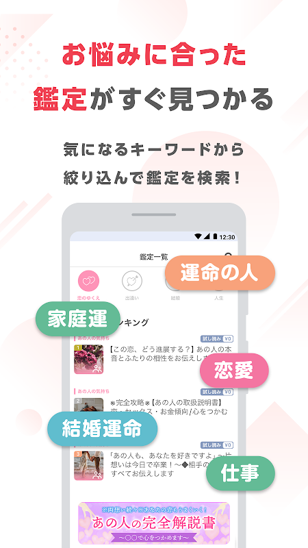 在电视上被介绍为娱乐界最强的“Getters Iida”的官方算命应用程序,并预测了一个又一个名人的命运!您还可以免费尝试超过70,000名鉴定师使用过的准确算命。