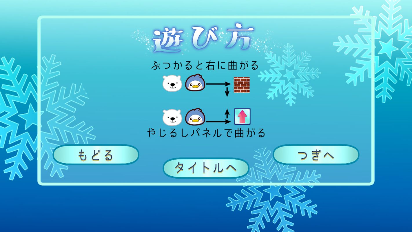 自動的に動くペンギンを矢印タイルで動かして、シロクマを避けながら穴に逃がす簡単なゲームです。
