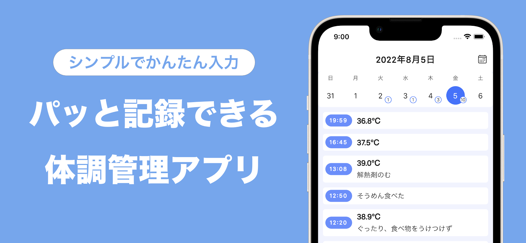 ■ 只需少量操作即可记录体温和身体状况