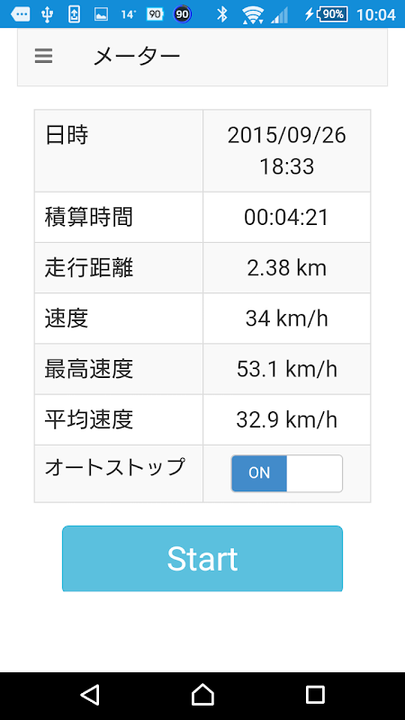 ・オートストップ機能(止まっている間は、平均速度に計算されない機能)