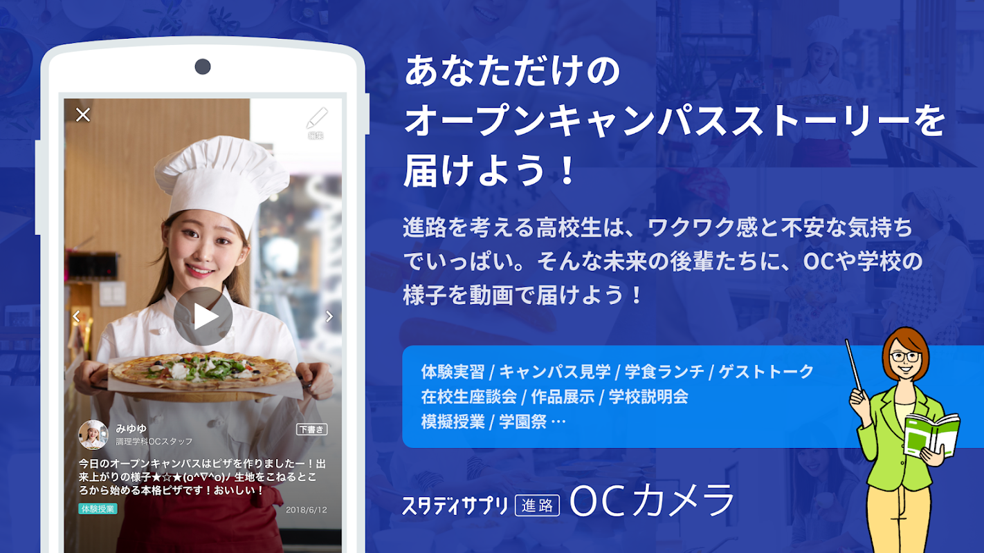 学习用品OC相机是一个相机应用程序,告诉你未来的青少年“你拍的电影”,“你学校的吸引力”。