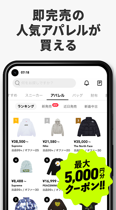 日本排名第一的运动鞋和集换式卡牌跳蚤市场应用程序!每月用户超过600万。所有商品最高可获得价值5000日元的优惠券。