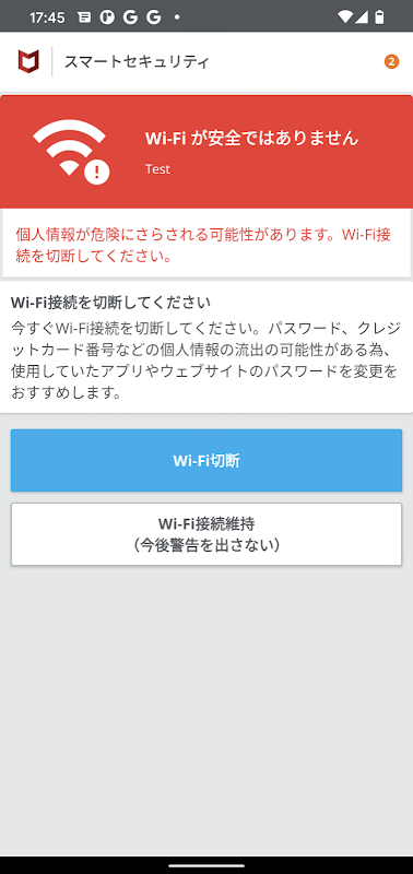 使用 Wi-Fi 时,它会检测是否存在危险的 Wi-Fi 连接或来自外部的未经授权的访问,并通过警告屏幕通知您。