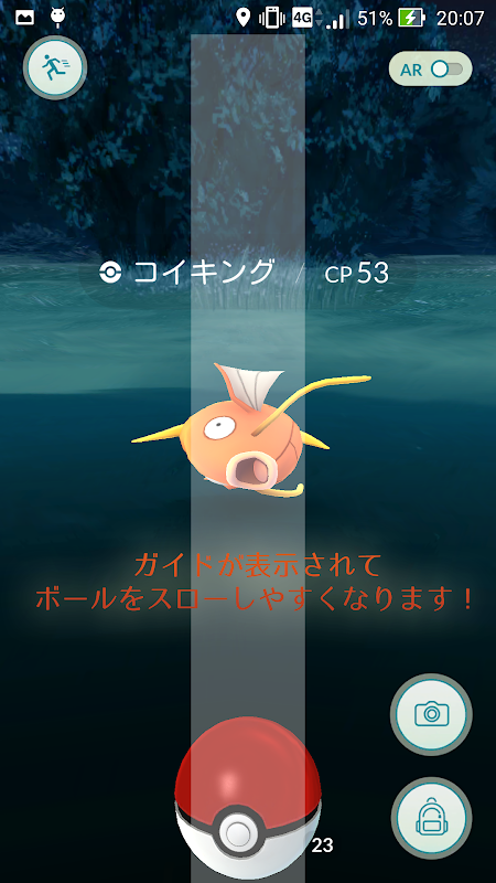2.ポケモンGOでモンスターを捕獲する際、描画されたセンターラインを参考にボールをスローイング!