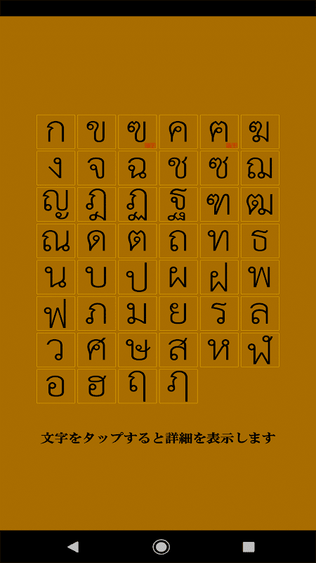 辅音元音,数字和字符泰国并显示在随机的符号。当您点击角色就可以看到人物的细节。