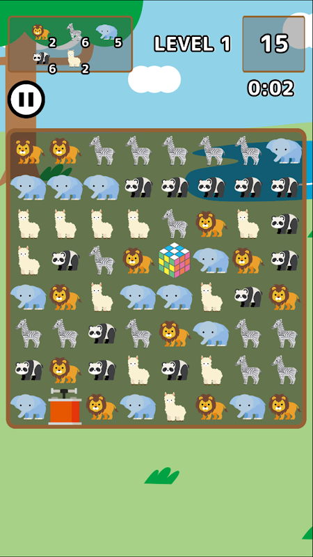 上下左右に二個以上のどうぶつがあったら破壊可能。