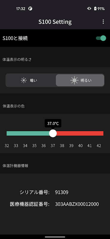 您可以更改温度计的“显示亮度”和“体温显示颜色”。