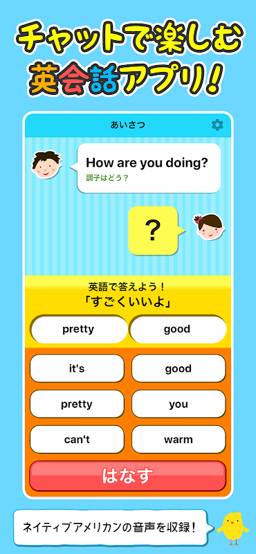 不过没关系。有了这个应用程序,您只需要 2 个单词!这个“2个单词的英语会话”仅使用英语孩子日常使用的自然表达方式!